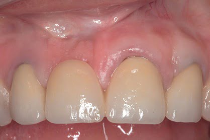 Gum recessions are then treated by repositioning the gums (“Pulling the gums up”) and/or by doing gum grafts. Gum grafts are done with your own tissue (taking gum from the roof of your mouth) or by using a gum substitute like AlloDerm®.